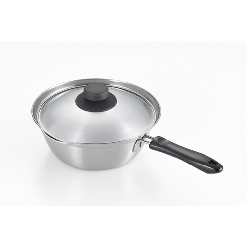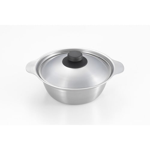 金属加工で有名な新潟県燕三条の職人たちが作り上げた逸品です。 株式会社ヨシカワの、どんぶり鍋、ラーメン鍋にぴったり合う兼用蓋です。 熱に強く熱くなりにくい素材のつまみです。 |