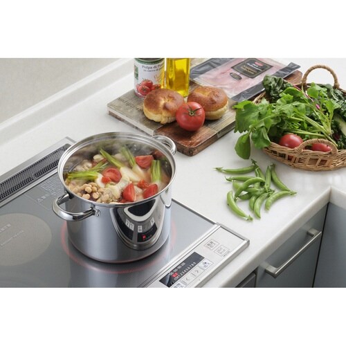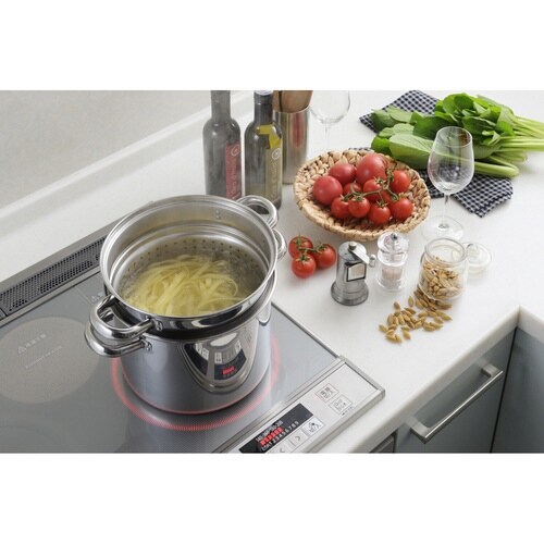 パスタの麺茹でも煮込み料理もこれ1つでできるステンレス製のパスタポットです。 中子付きで麺などの湯切りがラクにできます。 中の様子が見える、ガラス蓋が付属しています。 |
