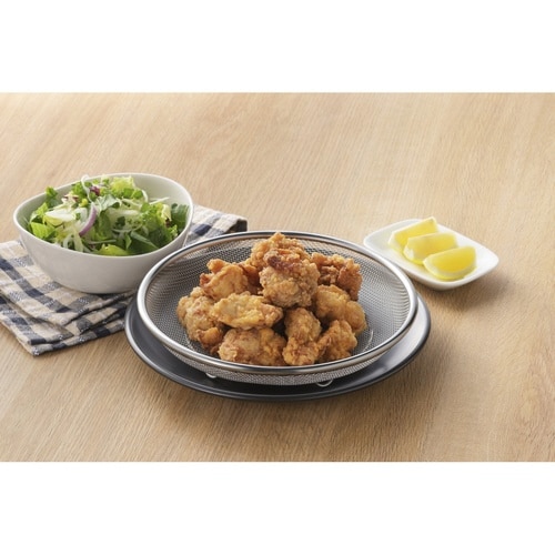 蒸しかごとしても使える浅型のザル22cmです。 浅型ザルは食材が重なりにくいので、揚げ物の油切りとしてバット代わりにも使用できます。 麺類や鍋の具材の盛りざるとしてそのまま食卓へ出すこともできます。 |