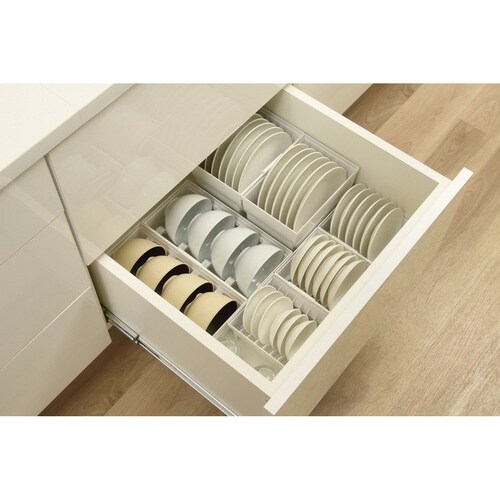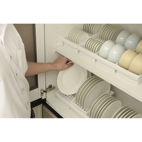 トトノシリーズの引き出し用ディッシュスタンドミニサイズです。 キッチンの引き出しの中をサイズ別に分けて、様々な食器の定位置を作り美しく収納できます。 お皿を取り出しやすいスタンド型です。 |