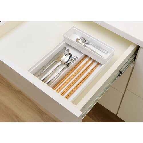 トトノシリーズの引き出し用カトラリーポケットミニサイズです。 キッチンの引き出しの中をサイズ別に分けて、様々なカトラリーの定位置を作り美しく収納できます。 |