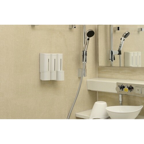 マグネットで浴室壁面に簡単に取り付けできるディスペンサー500mlです。 浮かせて設置するので、底がヌメらず衛生的です。 片手で押すだけで中身が出てくるプッシュ式です。 |