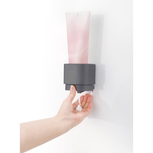 シールフックで壁面に簡単に取り付けできる洗顔料ディスペンサーです。 浮かせて設置するので、底がヌメらず衛生的です。 片手で押すだけで中身が出てくるプッシュ式です。 |