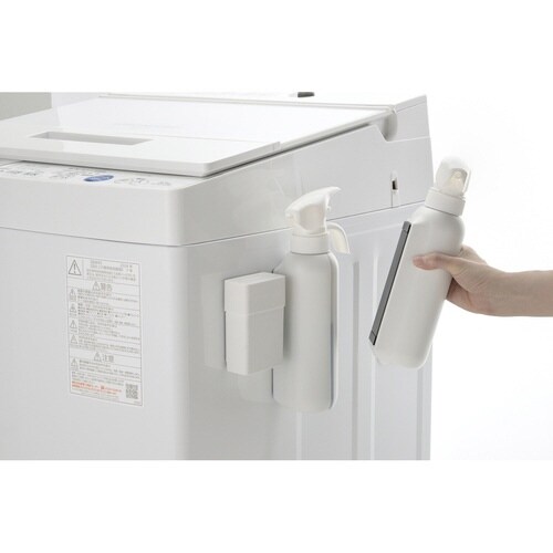 マグネットで取り付けできる、液体洗剤ボトルです。 ホワイトとダークグレーの2色展開です。 片手でワンプッシュするだけで液体洗剤が出てくるので、洗濯作業の時短になります。 |
