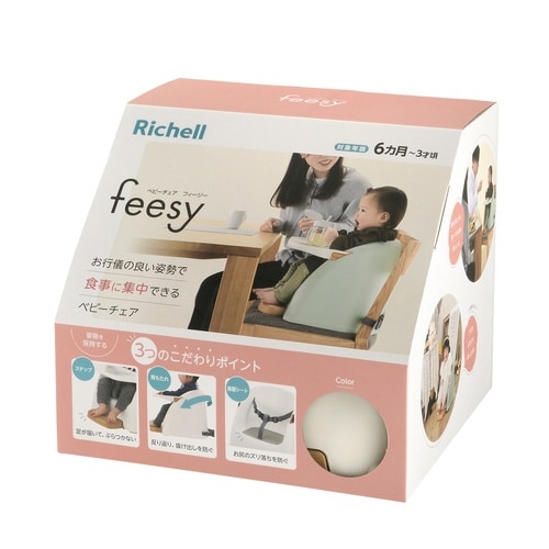 お行儀の良い姿勢で食事に集中できるベビーチェアです。 背もたれ、ステップ、座面シートの3つのこだわりで姿勢をサポートします。 |