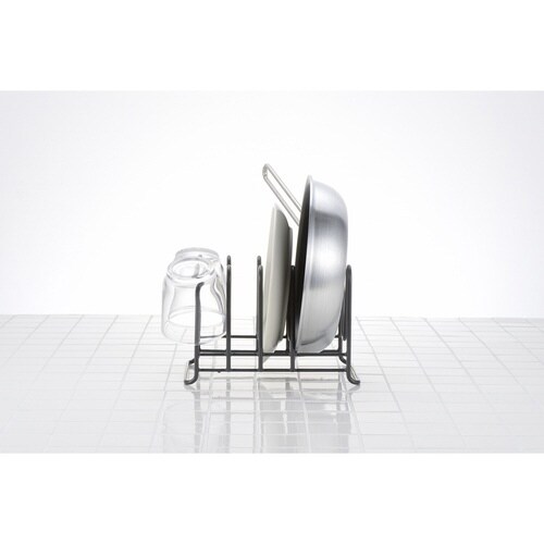 異なるワイヤーピッチ幅によりコップ以外の様々な物の水切りや収納ができます。 厚さ3.5cmまでのフライパンに対応しています。 別売りのドレイニングトレーXSとセットで使用できます。 |