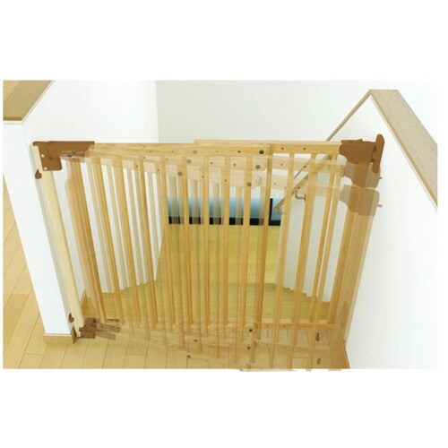 間口74cmから114cmの階段上にも設置ができるバリアゲートです。 階段側にドアが開かないから安心して設置できます。 しっかりネジで固定できます。 床面すっきりバリアフリー仕様です。 |