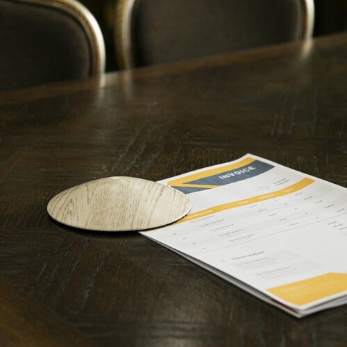 温かみのある木目調デザインのペーパーウェイトです。 裏面には滑り止めが付いています。 ドアストッパーとしてもお使いいただけます。 円すい型で、360度どの方向からでも差し込めます。 |