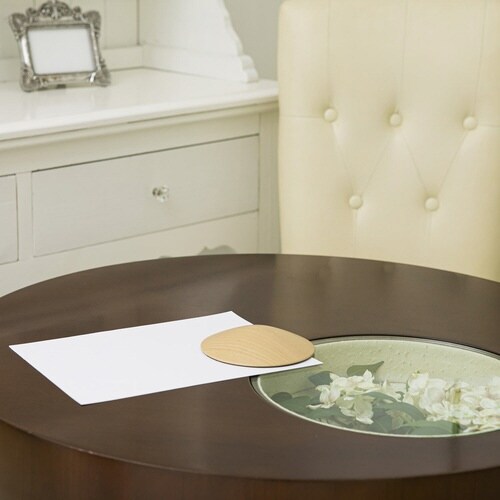 温かみのある木目調デザインのペーパーウェイトです。 裏面には滑り止めが付いています。 ドアストッパーとしてもお使いいただけます。 円すい型で、360度どの方向からでも差し込めます。 |