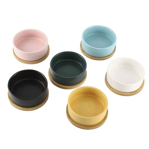 温もりのある色合いの陶器と竹製のトレイがセットになったペット用食器です。 毎日食べるごはんの時間を、素敵な食器でより楽しく、インテリアにもなじむ心地よくリラックスした雰囲気の食器です。 |