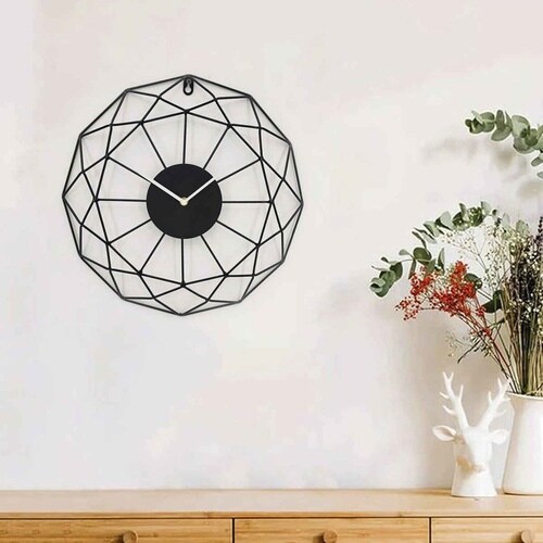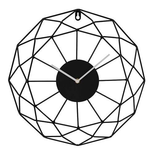 黒い幾何学模様のアイアンフレームが魅力的な掛け時計です。 インデックスを省いたアイアンフレームがシックな印象を強く与えます。 おしゃれなデザインなので、壁を彩るインテリアとしてもお楽しみいただけます。 |