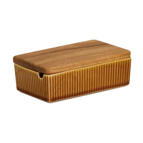 どんな食卓にもなじむバターケース バターナイフ用のスリット付き シリアルナンバー付きのチーク材を使用した蓋 使い方いろいろ 冷蔵庫の中もすっきり |