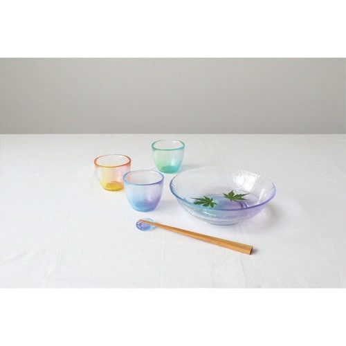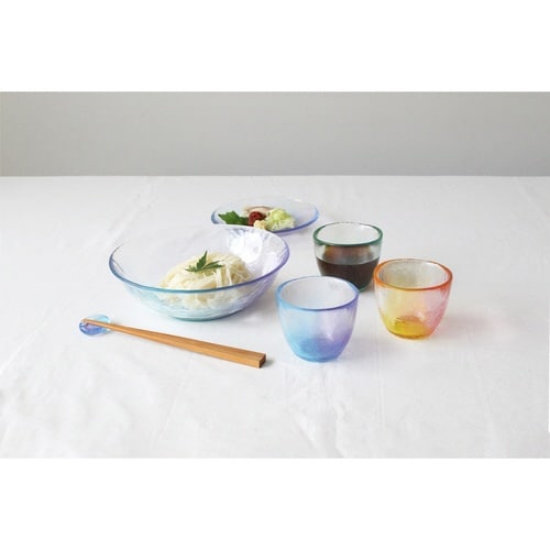 移ろいゆく空の色を表現したガラス製の麺鉢です。 少し厚みのある優しい表情のガラスが特徴です。 江戸硝子職人による手作りの器なので、ひとつひとつ違った表情が楽しめます。 |