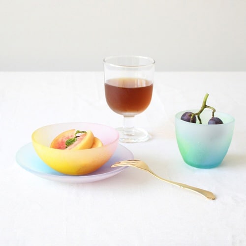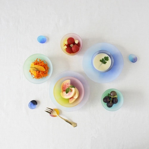 移ろいゆく空の色を表現したガラス製のグラスです。 容量は170mlです。 空のいろどりシリーズにフロスト加工を施した、霧のような柔らかな光が美しい「mist」シリーズです。 |