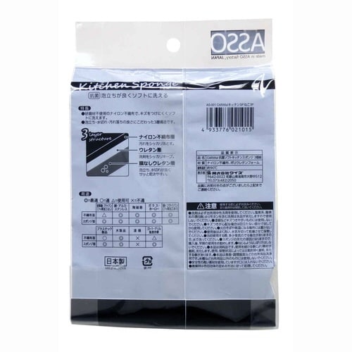 研磨材不使用のナイロン不織布でキズをつけにくくソフトに洗えます。 泡立ち・水切れ・汚れ落ちの良さにこだわった3層構造です。 水切れのよい膜なしウレタンを使用しています。 抗菌仕様です。 |