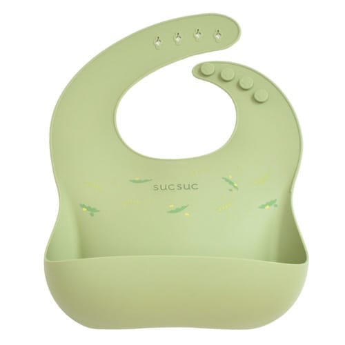 ベビーエプロン SUCSUC ポケット付シリコーンビブ グリーン ※2個以上から注文可能(販売価格は1個単位の価格)