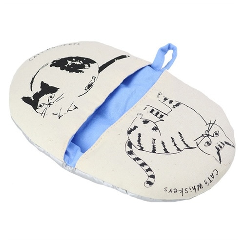 サッとはめられて利き手を選ばない鍋つかみです。 猫ののんびりとした表情がかわいらしい「CATS Whiskers」シリーズです。 裏地には燃えにくい防火加工がされています。 |