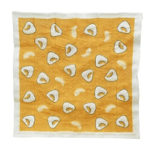 おにぎりさん柄がかわいいかや生地ふきんです。 吸水性と耐久性が高く毛羽立ちにくい生地です。 通気性のよいかや生地を7枚合わせているので、使い込むほどにふんわりとした肌触りになっていきます。 |