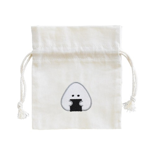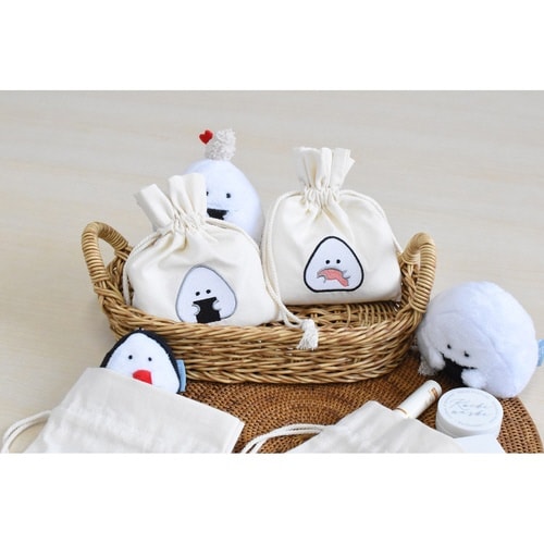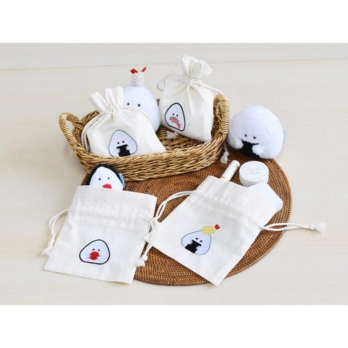 柔らかなコットンにおにぎりさんたちのワンポイント刺繍がついたミニ巾着です。 コスメやエチケットアイテム、お菓子などの小物入れとして使えます。 |