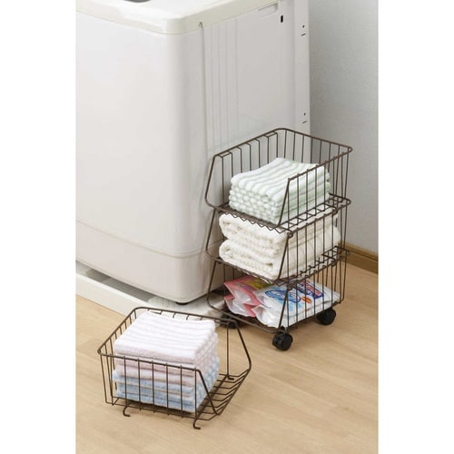 重ねても、バラしてひとつからでも使えるキッチンスタッキングバスケット・4段です。 バスケットを重ねれば省スペースにまとめて収納ができるのはもちろん、バラしてシンク下などに置いて使うことも可能です。 |
