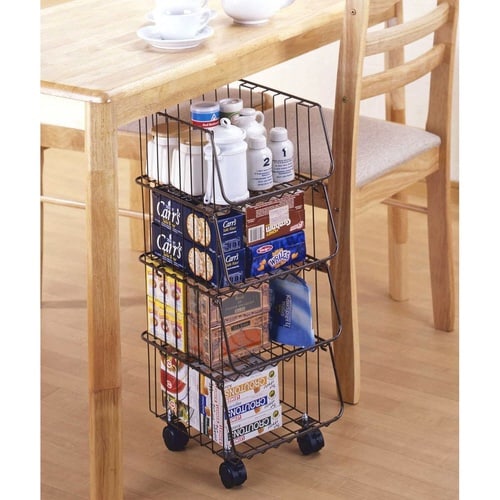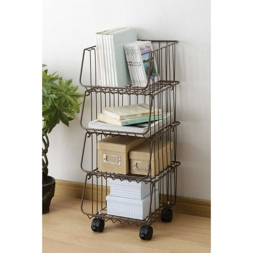 キッチンワゴン キッチンスタッキングバスケット 4段 ブラウン