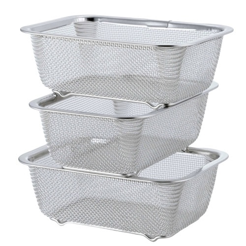 角ザル スタッキングミニ角ざる 3個組 ステンレス製 日本製 ※2個以上から注文可能(販売価格は1個単位の価格)