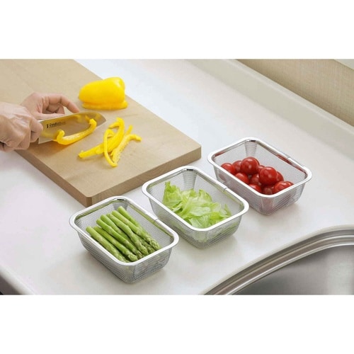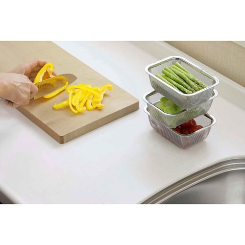 下ごしらえに便利な角ざるセット 重ねて使える 重ねてコンパクト 組み合わせてさらに使いやすく |