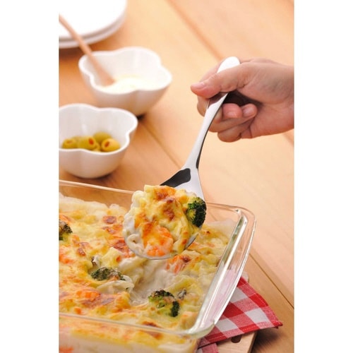 料理の取り分けに便利な大きめのサービングスプーンです。 汁気の多い料理や、ピラフ、チャーハンなどの取り分けにも使えます。 継ぎ目が無いので汚れが溜まりにくく、清潔にお使いいただけます。 |
