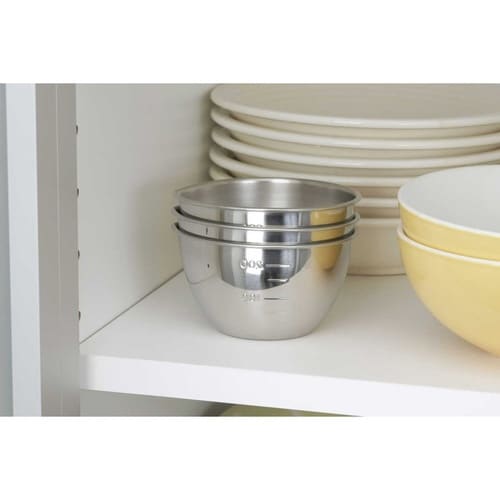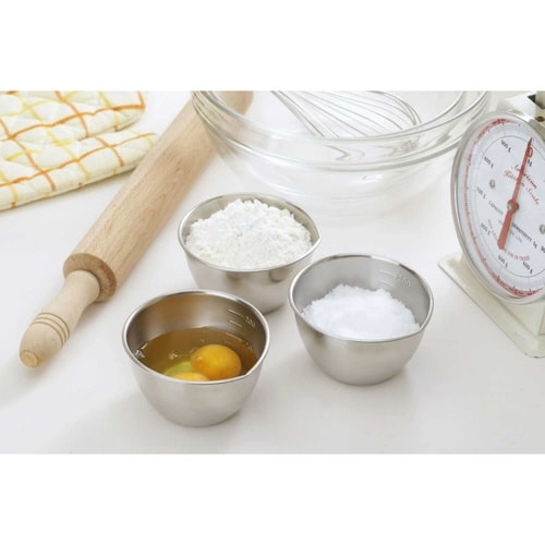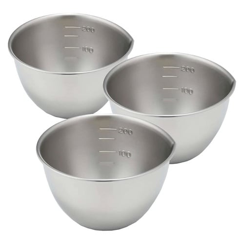 料理の下ごしらえや食材の小分けに便利なボールのセットです。 使い勝手のよい小さめサイズです。 目盛りがついているので、分量がひと目で確認できます。 注ぎ口付きなので、液だれしにくく作業台を汚しません。 |