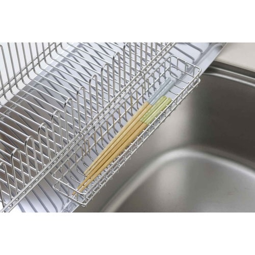 ロングでたっぷり収納できる水切りバスケットです。 デッドスペースになっていたシンク脇のすき間にぴったり置けます。 シンクにまたがせることができる約58cmのロングサイズです。 |