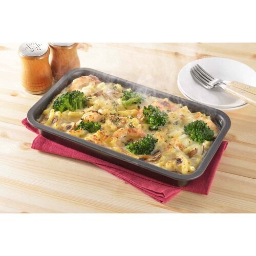 グリルで使える便利なトレーです。 グリルは余熱時間が無いので時短調理できます。 フッ素加工でお手入れラクラクです。 |