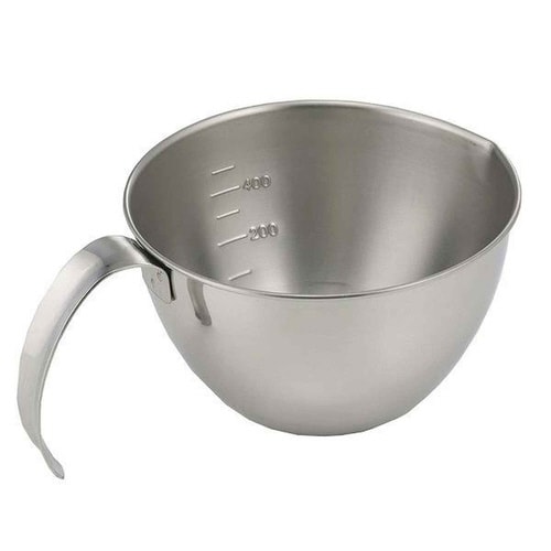 取っ手をしっかり握れてかき混ぜもラクラクのボウルです。 卵やソース・ドレッシング・パンケーキ・お好み焼き作りの下ごしらえにぴったりのサイズです。 分量の目安となる目盛りと注ぎ口もあり、便利です。 |