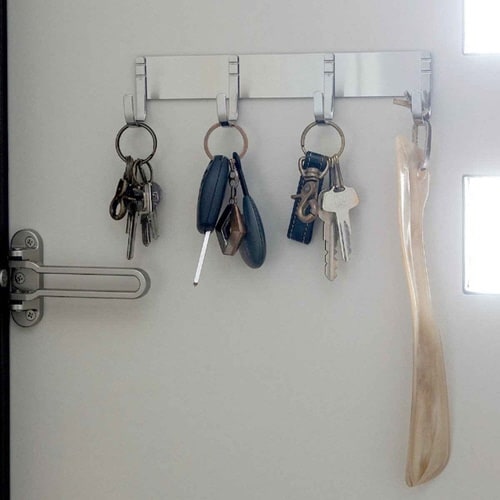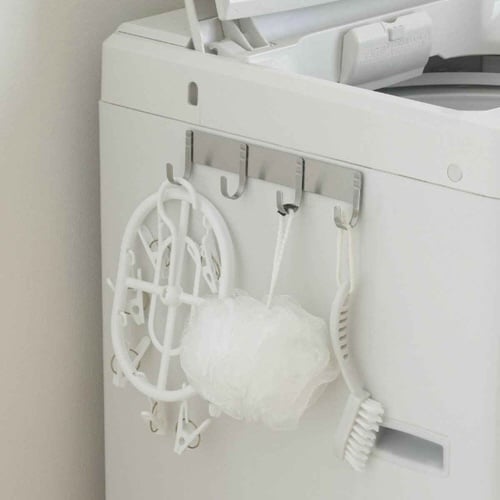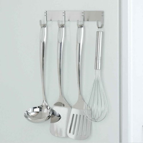 マグネットがくっつくところならどこにでも設置できる、ステンレス製4連フックです。 冷蔵庫やレンジフードに貼り付けて、よく使うキッチンツールを掛けておけます。 |