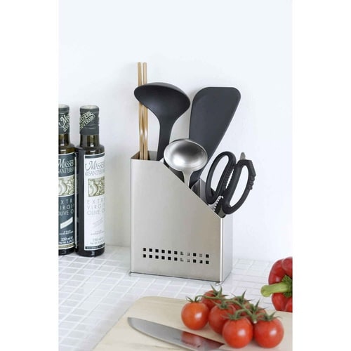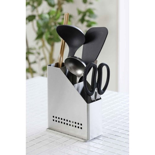 ハサミやお玉などをまとめてスッキリ収納できるツールスタンドです。 斜めになっているので、ツールの長さに合わせて収納できます。 シンク奥にも置けるスリム形状で、サッと取り出せる所に置けるので便利です。 |