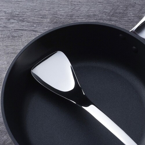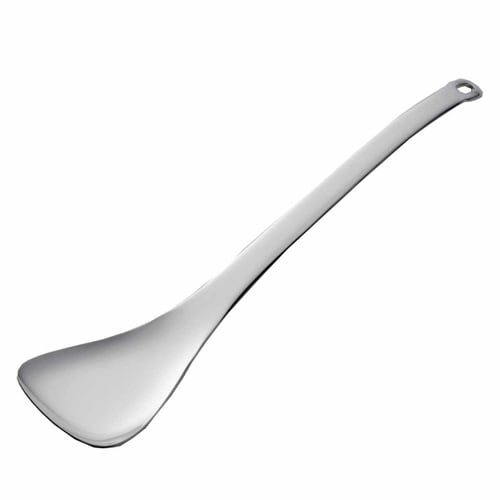 ロングタイプのステンレス製サーバーです。 フライパンや大皿からすくい取りやすい先端形状になっています。 柄が長いのでフライパンの混ぜ物料理にも便利です。 |