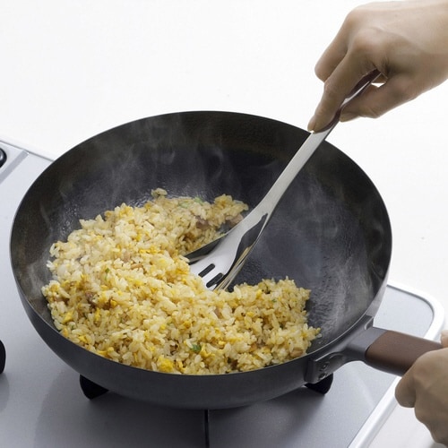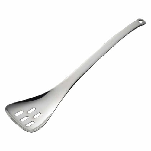 ロングタイプのステンレス製のサーバです。 具材だけをすくい取るのに便利な穴あきタイプです。 柄が長いのでフライパンの混ぜ物料理にも便利です。 |