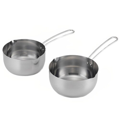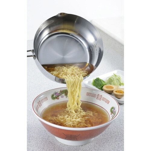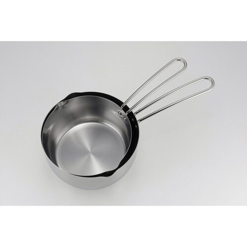 丈夫なステンレス製で、食洗機で丸洗いいただけます。 IH、ガス火対応です。 左右の注ぎ口で利き手を選びません。 ワイヤーハンドルで壁掛け収納もできます。 |