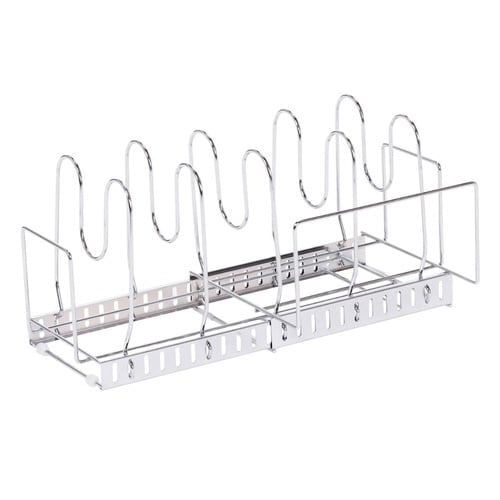 シンク下の引出しスペースに合わせて、ぴったりフィットするフライパンラックです。 フライパンだけでなく鍋も立てて収納できます。 |