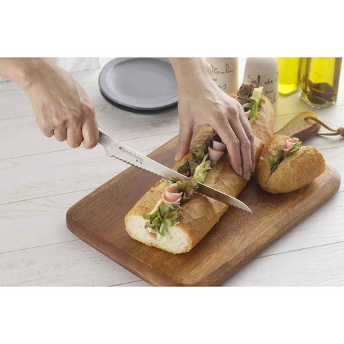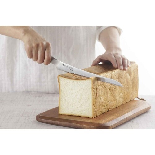 特殊加工の波刃で、硬いパンも柔らかいパンも美しくカットします。 刀身には耐摩耗性の高いモリブデン鋼を使用しているので、切れ味が長持ちします。 ハンドルを中空構造にすることで軽量に仕上げました。 |