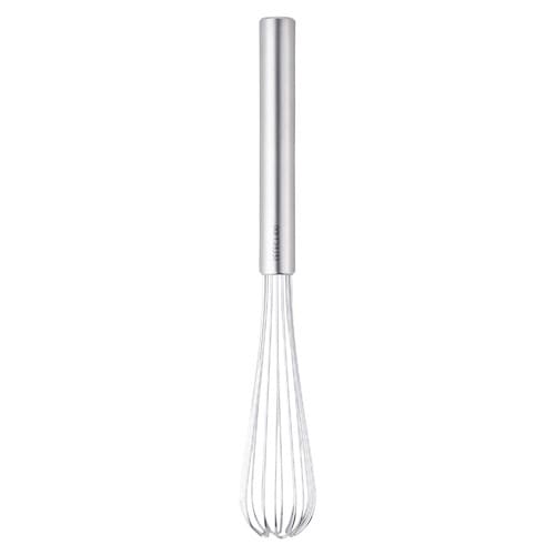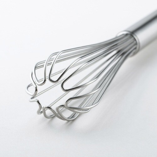 小さめのボウルや計量カップにすっぽり入るスリムタイプの泡立て器です。 先端はワイヤーが重なっていない茶せん形状です。 底当たりがよく、効率的に混ぜる事ができます。 |