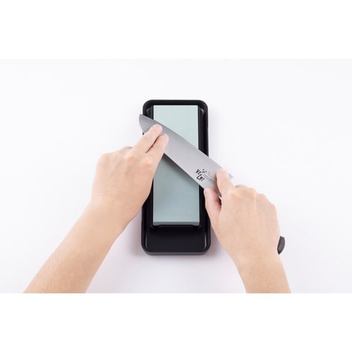 小さな刃欠けの修正や、刃形状の修正に使用する荒砥石#400です。 高い研削力でスピーディーな研ぎ直しが可能です。 収納ケースは研ぎ台としても使えます。 |