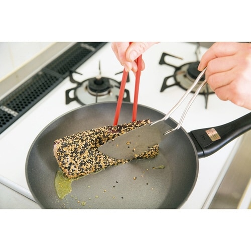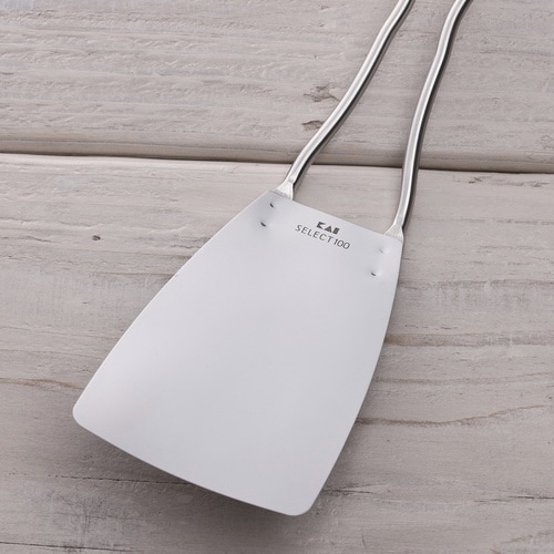 機能とデザインを極限にまで追求しながらも本格的で調理しやすく料理を楽しくするシリーズ「SELECT100」 しなやかな弾力を持ち、食材の下に入りやすく、使いやすいターナーです。 |