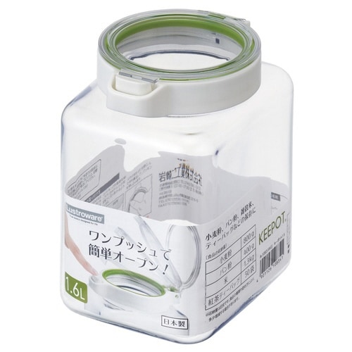 開閉しやすいワンプッシュオープンの保存容器です。 クリアな本体とフタで中身が分かりやすくなっています。 見せる収納でキッチンを楽しく彩ります。 軽くて丈夫なプラスチック製です。 容量は1.6Lです。 |