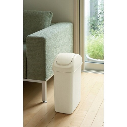 丸みのあるラウンドフォルムがおしゃれでやさしい印象のゴミ箱です。 ふた付きでゴミが見えないため、生活感を感じさせません。 簡単に開閉できるスイング式です。 |