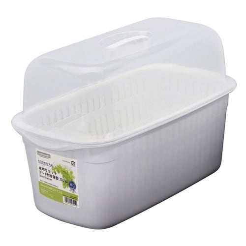 フード付きの水切りセットです。 スリム型なのでキッチンの作業台の上で、場所をとらずに置くことができます。 フード付きで食器にホコリがかかるのを防ぎます。 |