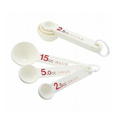 便利な機能が備わった調理具シリーズの軽量スプーンです。 小さじ1/2(2.5cc)、小さじ1(5.0cc)、大さじ1(15cc)の3種類が付いています。 |