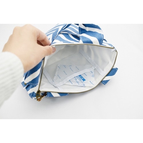 清潔感のあるシンプルなデザインのランチバッグです。 ランチバッグの外側にはマスク専用ポケットが付いています。 バッグの・ポケットの内生地には抗菌加工生地を使用しています。 |
