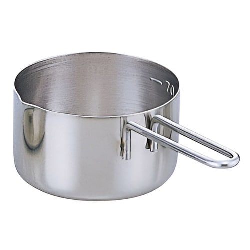 ステンレス製で、サビにくく丈夫な計量カップ90mlです。 目盛り、注ぎ口、長い持ち手が付いています。 すり切り一杯で0.5合のお米が測れます。 安心の日本製です。 |