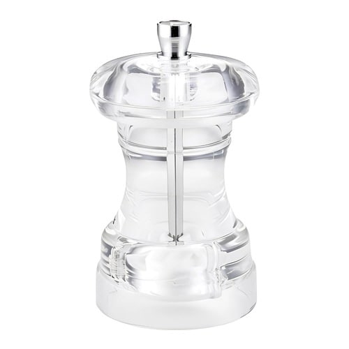 クリアなアクリル製のペッパーミルです。 いつでも挽きたての香りと風味が楽しめる、胡椒専用のミルです。 刃はセラミックなので、サビる心配がなく、お手入れがしやすいです。 |
