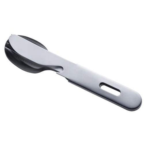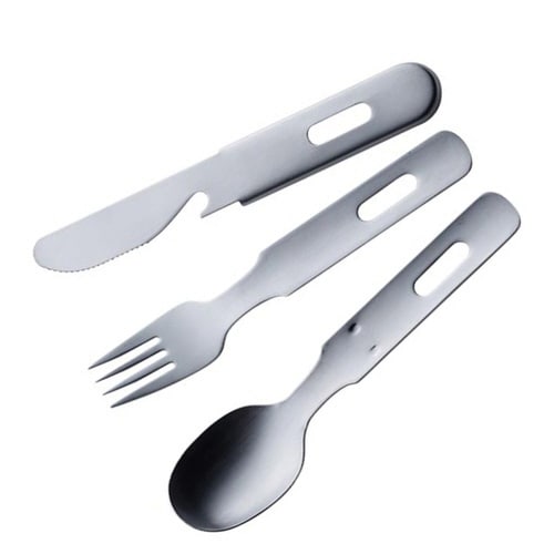 食事で出番の多いナイフ、フォーク、スプーンが1つになったカトラリーセットです。 小型でコンパクトなサイズ感なので、荷物にならず持ち運びに最適です。 ナイフは栓抜きとしての機能も付いています。 |